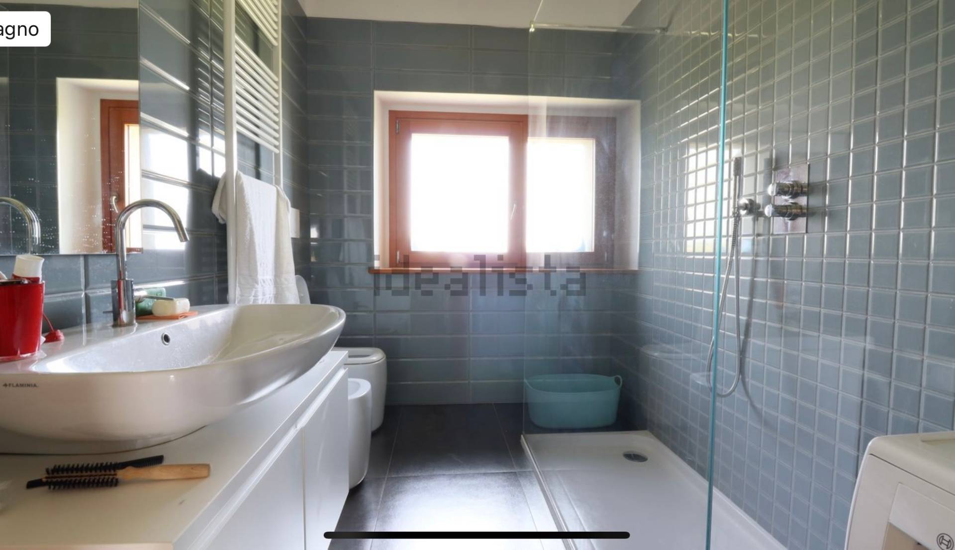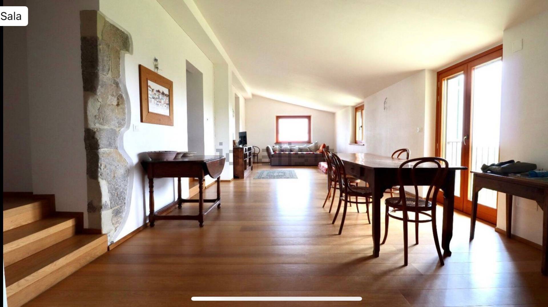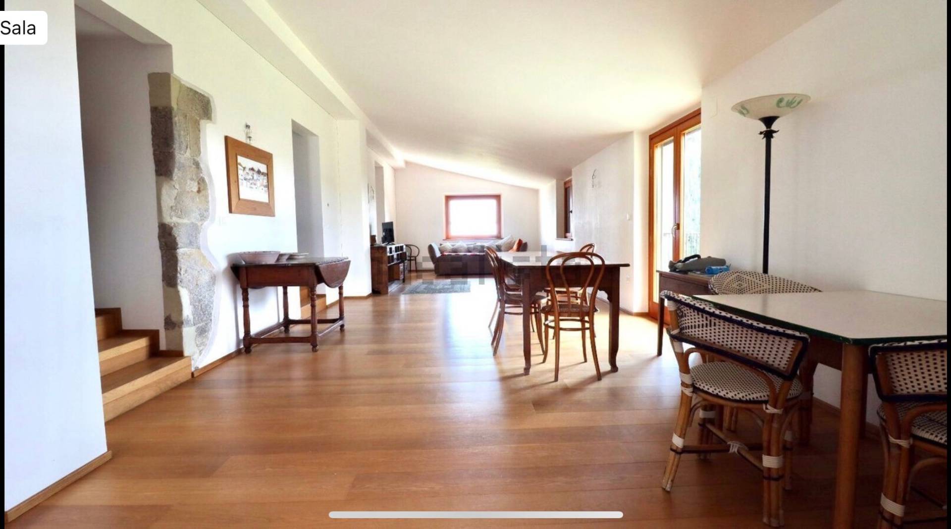 Al piano superiore si apre un secondo grande salone, una cucina abitabile completamente attrezzata con arredi di pregio e termo camino, ideale per vivere la casa in ogni stagione. La zona notte comprende due ampie camere matrimoniali, di cui una con bagno privato, oltre ad un ulteriore bagno finestrato.